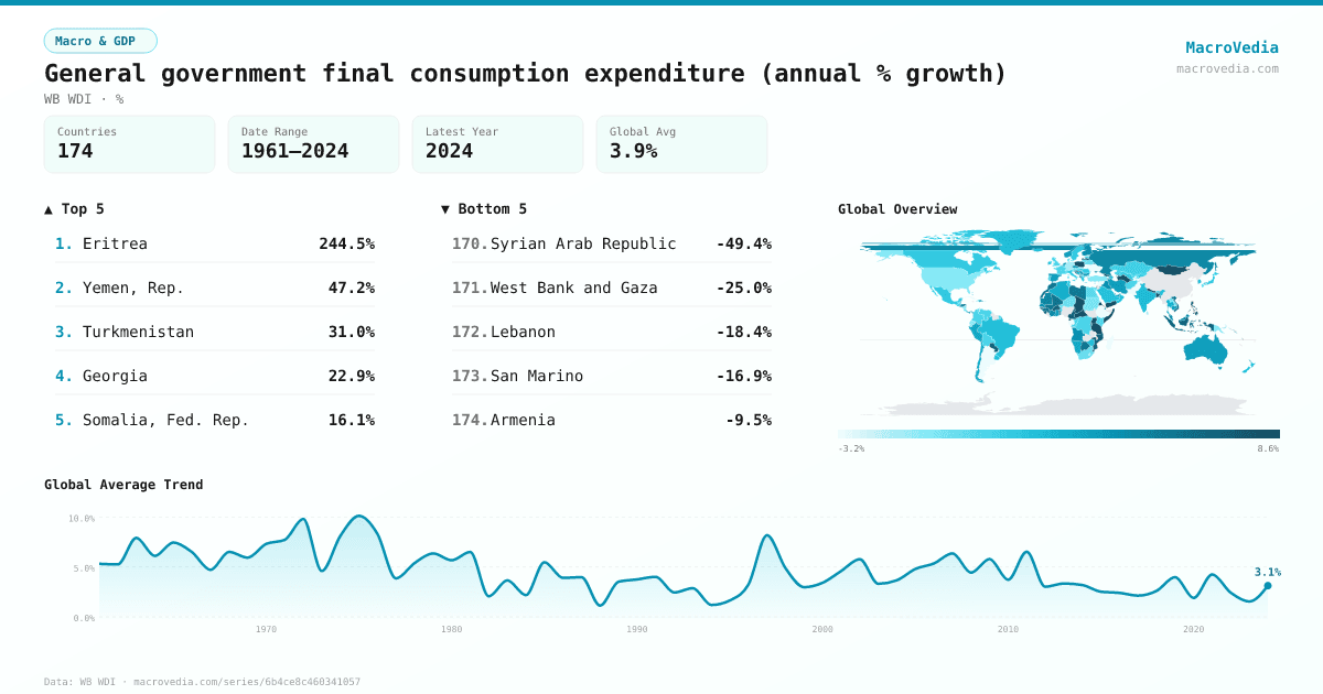 Macro & GDPWB WDIwb_wdi:NE.CON.GOVT.KD.ZG•%•1961 → 2024•174 countries