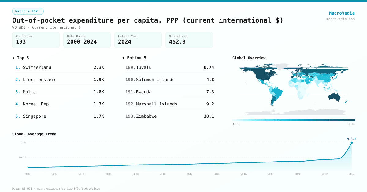 Macro & GDPWB WDIwb_wdi:SH.XPD.OOPC.PP.CD•Current iternational $•2000 → 2024•193 countries