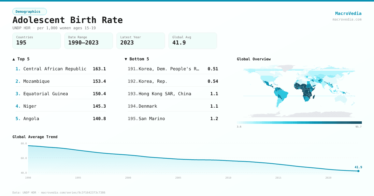 DemographicsUNDP HDRundp_hdr:abr•per 1,000 women ages 15-19•1990 → 2023•195 countries