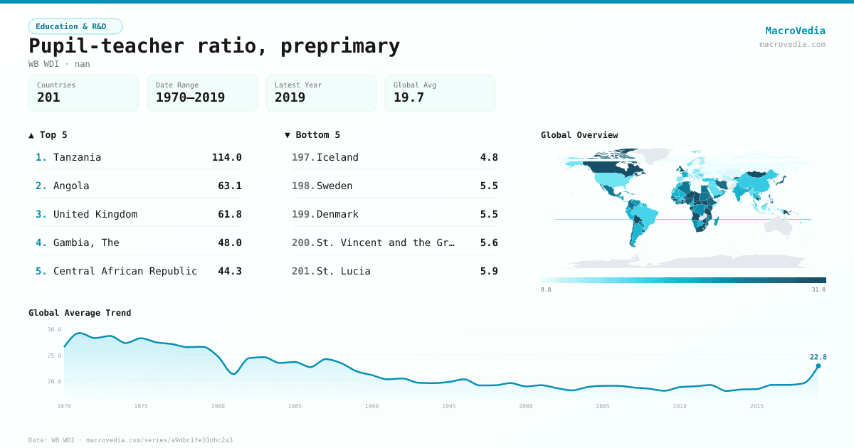 Education & R&DWB WDIwb_wdi:SE.PRE.ENRL.TC.ZS•nan•1970 → 2019•201 countries