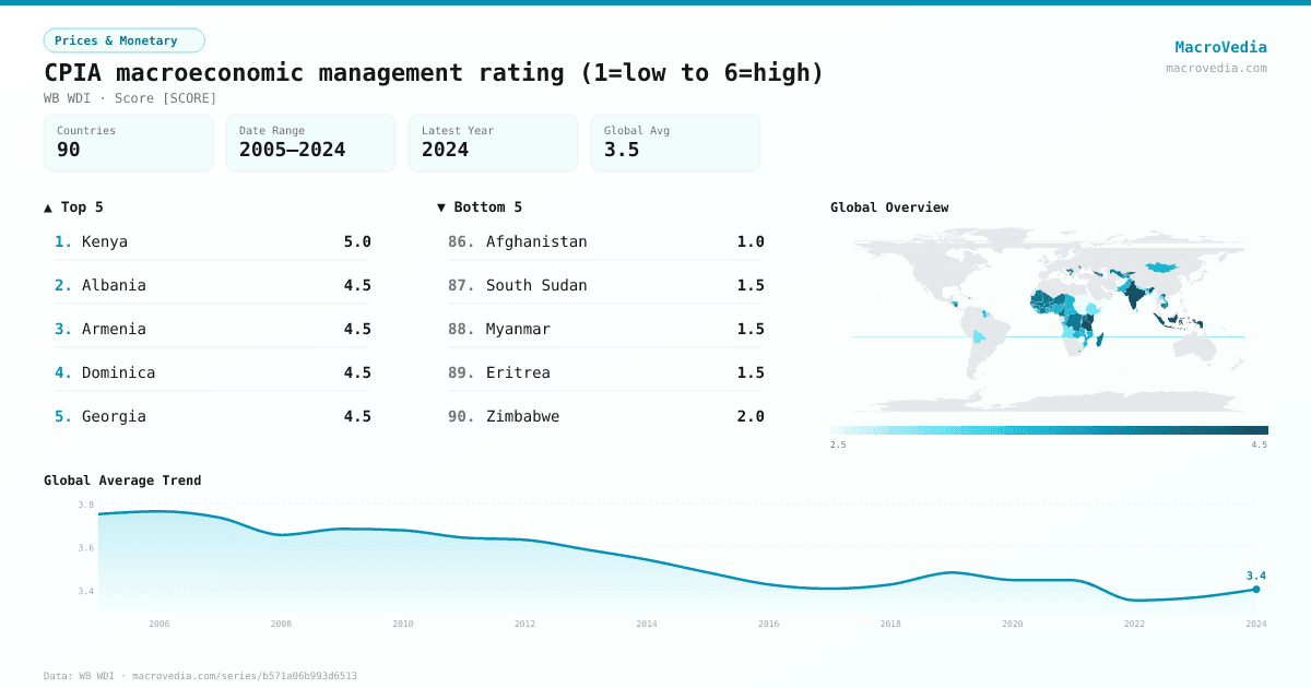 Prices & MonetaryWB WDIwb_wdi:IQ.CPA.MACR.XQ•Score [SCORE]•2005 → 2024•90 countries
