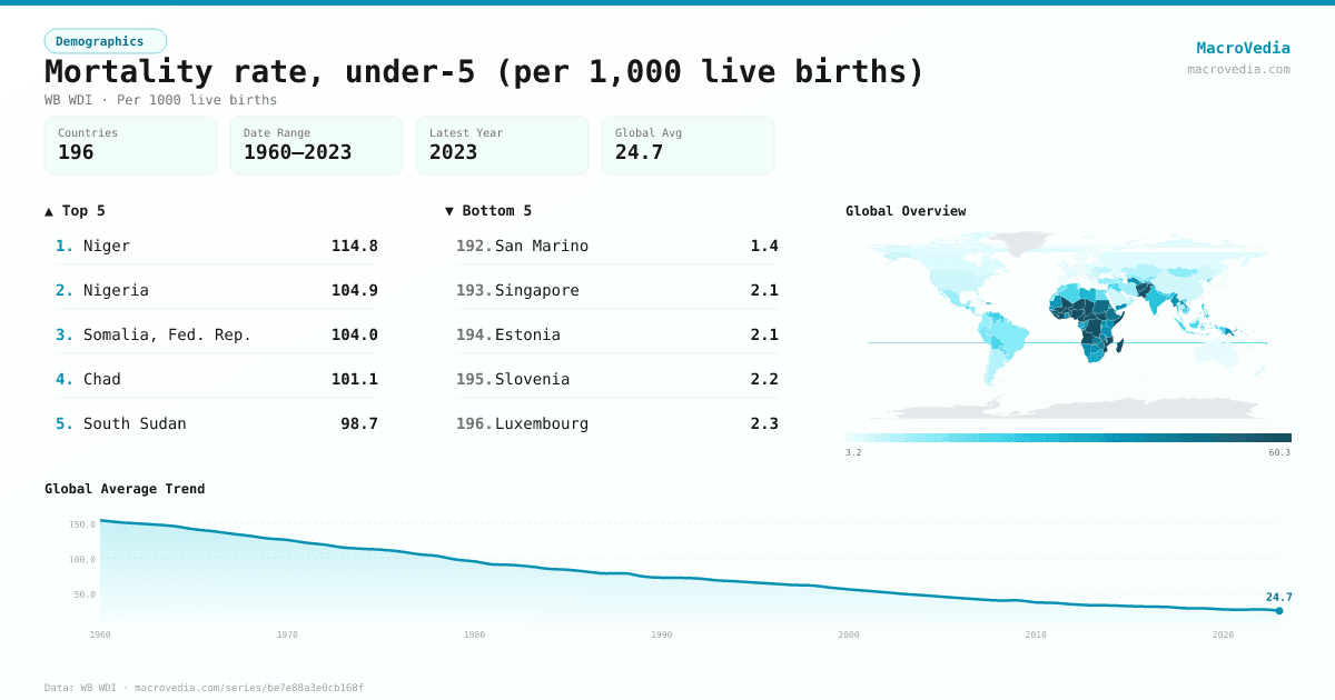 DemographicsWB WDIwb_wdi:SH.DYN.MORT•Per 1000 live births•1960 → 2023•196 countries