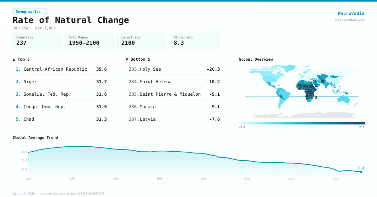 DemographicsUN DESAun_desa_pop:NatChangeRT•per 1,000•1950 → 2026•225 countries