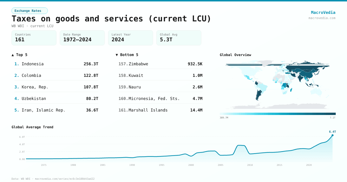 Exchange RatesWB WDIwb_wdi:GC.TAX.GSRV.CN•current LCU•1972 → 2024•161 countries