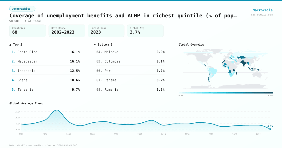 Coverage of unemployment benefits and ALMP in richest quintile (% of population) by country